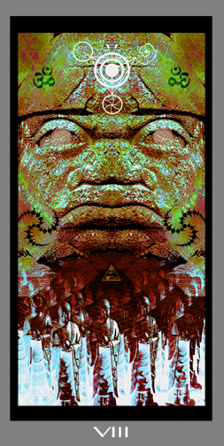Previously depicted as Le Mat or Le Fol (The Fool) – the Joker or Trickster – this 0 position is symbolic of all 22 paths of the Major Arcana, just as TAROT, itself, is representative of the larger collective Universe. Progressive ideas behind the symbolism of this card reveal principles of Quantum Superposition, which opening further ideas behind problems of Quantum Gravity and Indeterminacy described a quest for a Unified Field Theory. Conjectures behind these theories are formulated on the Plank Scale, a dimension of microcosmic reality engaging the interconnectedness of mind and matter, energy and consciousness. Generated from within this field, experiential reality, manifesting itself as a substantive, tangible, material existence, is mostly indeterminate or undifferentiated and tends to exist only at theoretical junctures of spacetime.